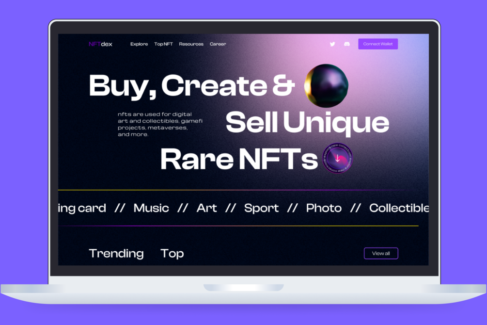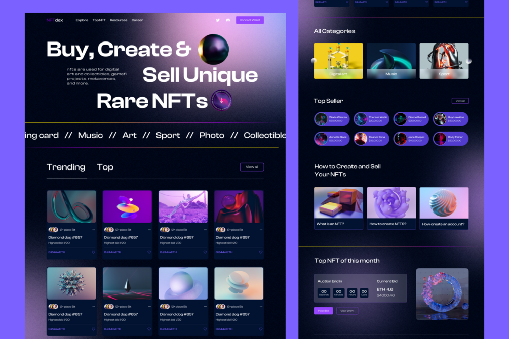 This is our new product NFTs Landing Page. The concept is easy to edit, customize, and resize, because of vector shapes, and very well organized layers. Note: Please download and install the fonts before opening the file.